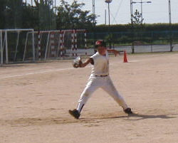 追加点があげられないまま回は後半戦に・・・・・ ピッチャーはここまでノーヒット。見事なでき栄えである。 ピッチャーの好投に答えたいものの、塁には出るが得点には結びつかない。 しかし、守りでピッチャーを盛り上げる。 続々ファインプレーが飛び出す。 |